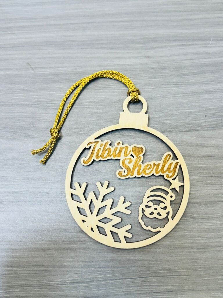 Wooden Christmas Tree Hanging-Round shape with Laser engraved Name with Crib Design
